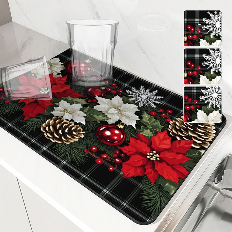 Kitchen Drying Mat Christmas Fir Dry Coffee Mat Absorbent Dish Placemat Table Cup Drying Mats Table Decoration Accessories