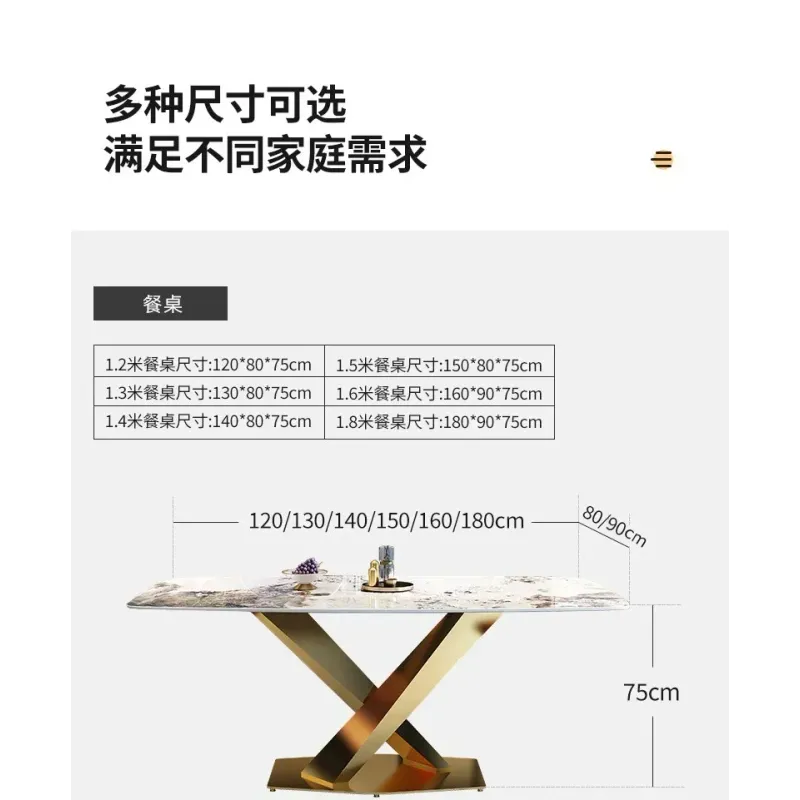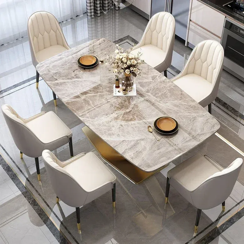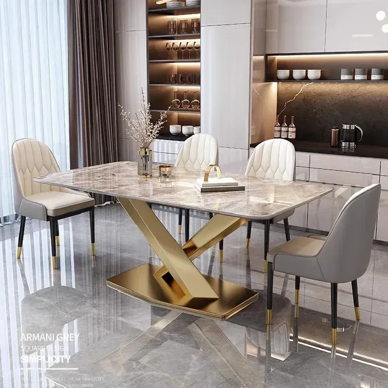 Kitchen Fashion Dining Tables Thick Solid Rock Board Center Steel Luxury Dining Tables Kitchens Table Basse Dining Furniture