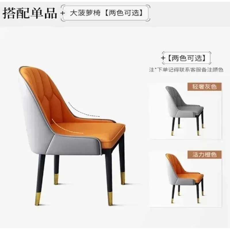 The design of the dining chair is simple and modern, echoing the style of the dining table. The chair is made of comfortable materials, providing a soft sitting experience and allowing you to enjoy the ultimate comfort while dining. The color of the chair corresponds to the tabletop of the dining table, forming a unified color tone and creating a warm and harmonious atmosphere.