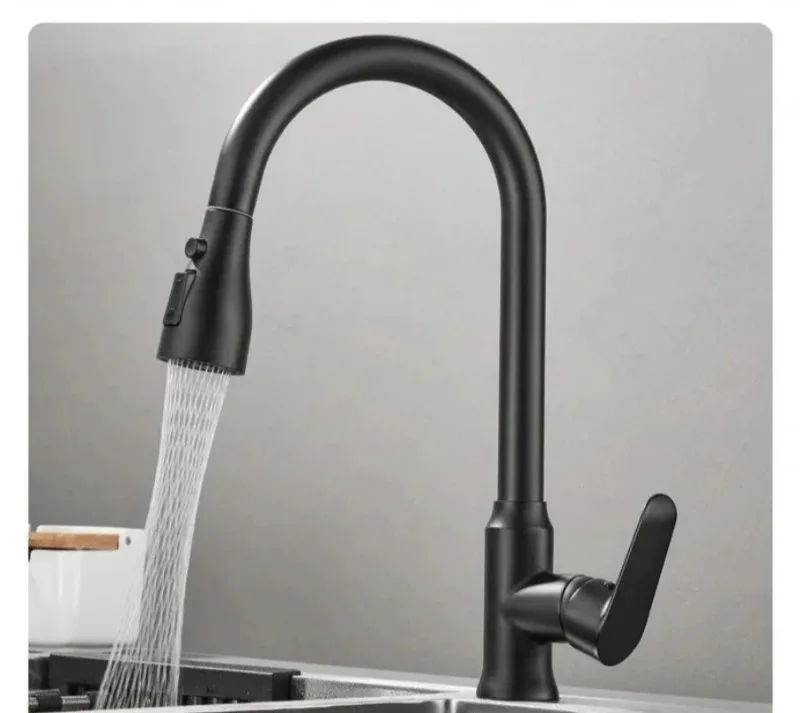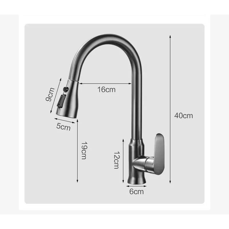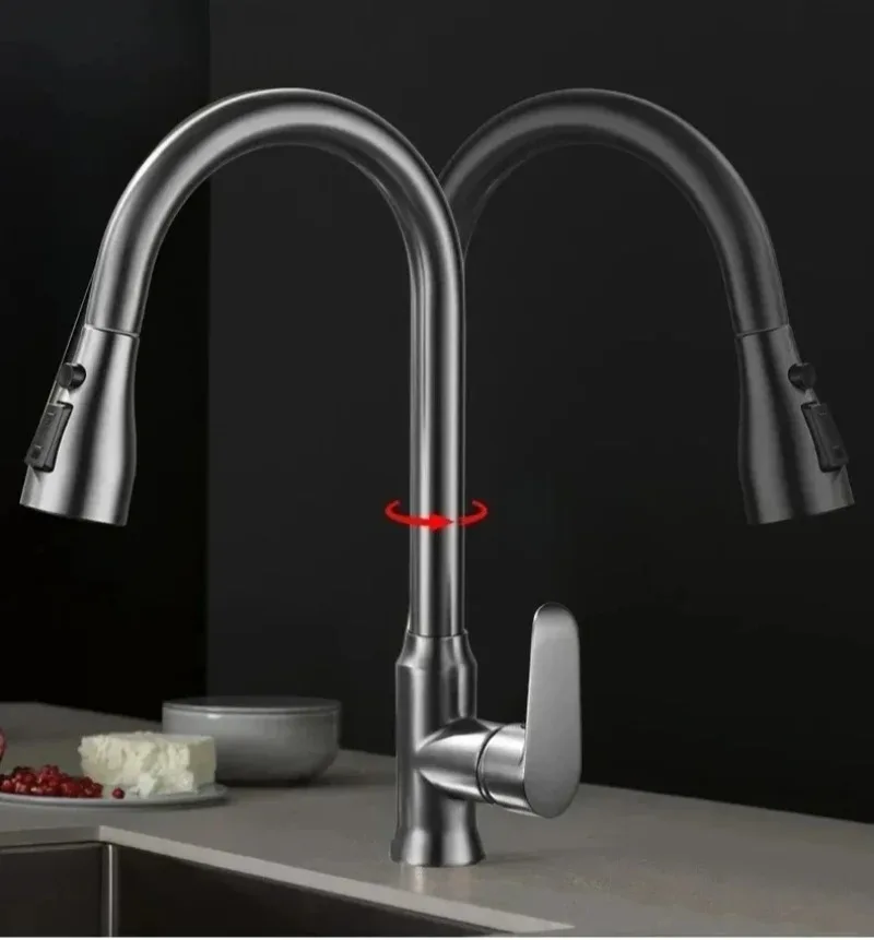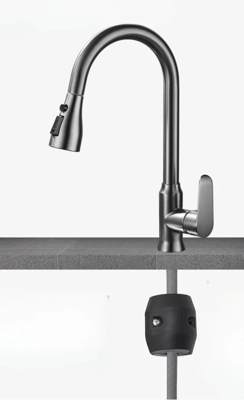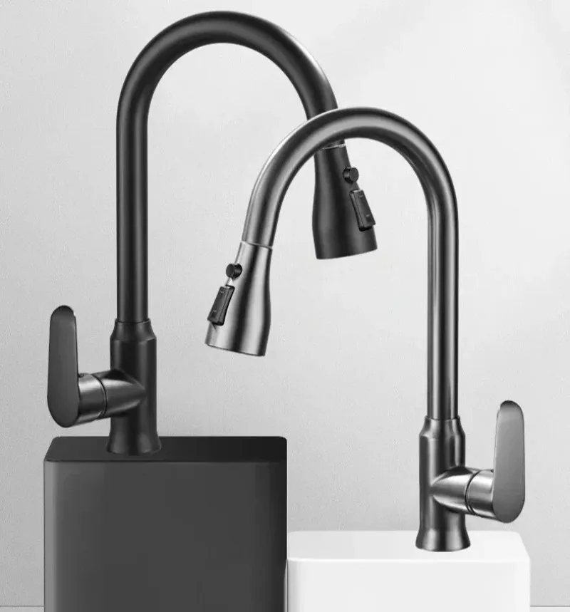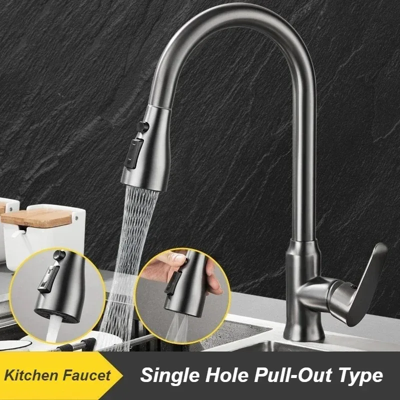Kitchen Faucet Single Hole Pull-Out Spout Kitchen Sink Mixer Faucet Stream Spray Head Gun Gray/Black Mixer Faucet