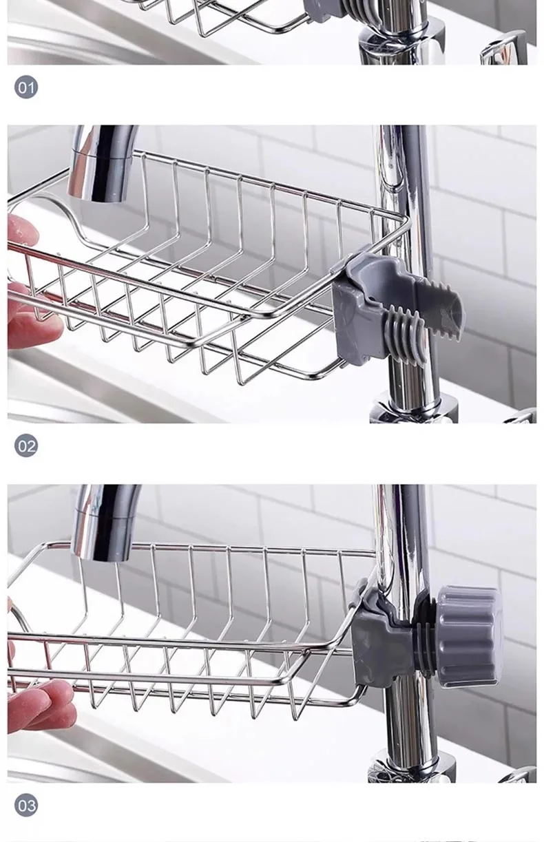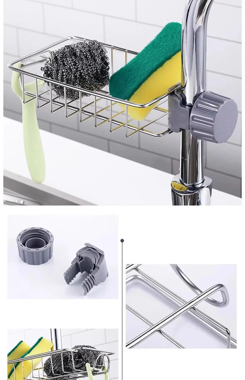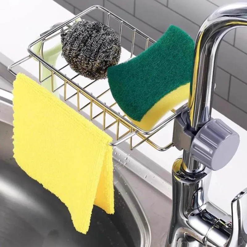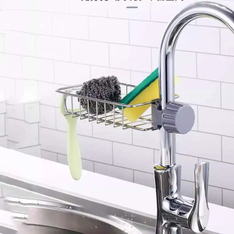 Kitchen Faucet Sponge Stainless Steel Bracket Shower Towel Rack Soap Box Sink Storage Rack to Store Bathroom Sponge Soap Brush