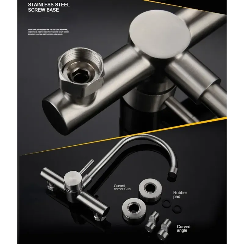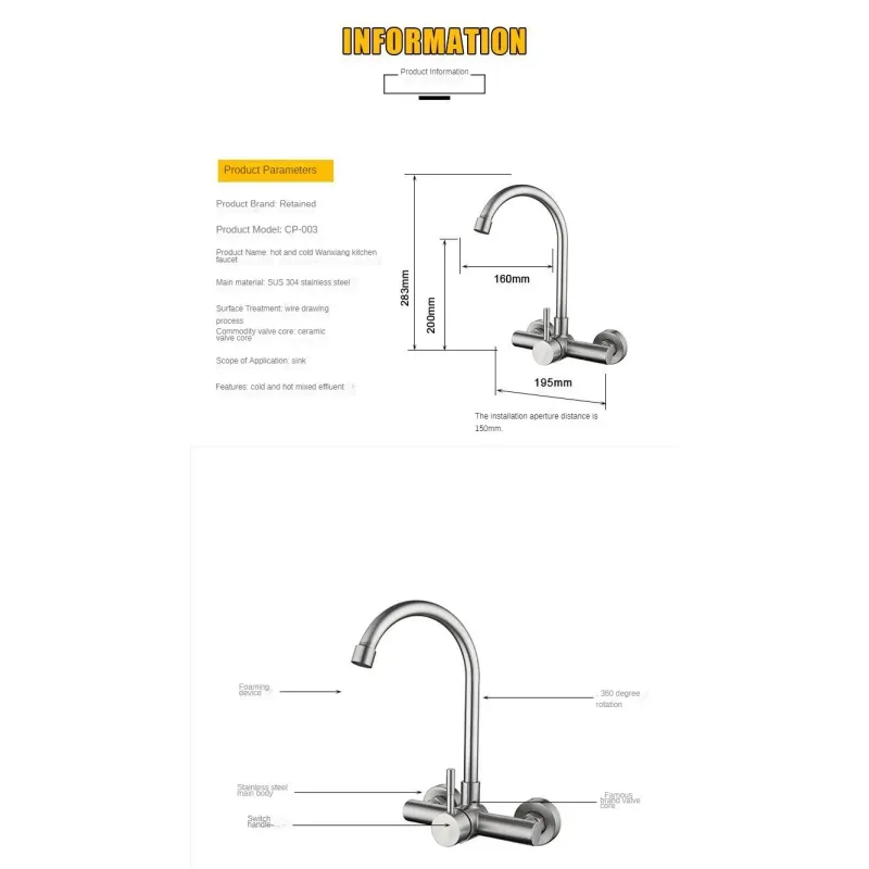 Kitchen Faucet Sprayer Stainless Steel Double Hole Wall Mount Cold and Hot Faucet Balcony Rotating Torneiras De Cozinha Batidora