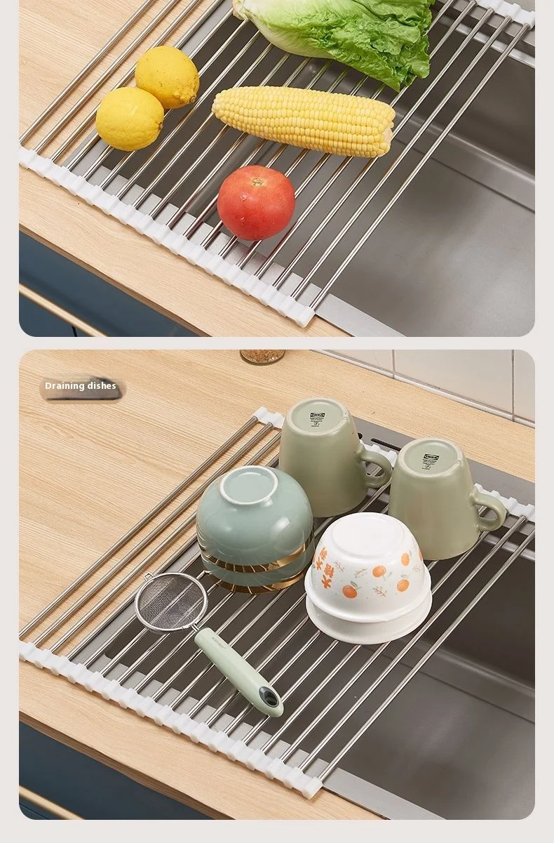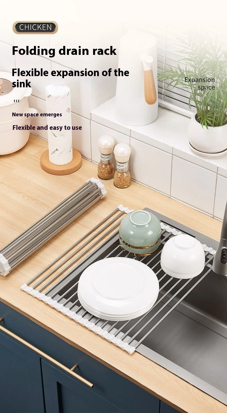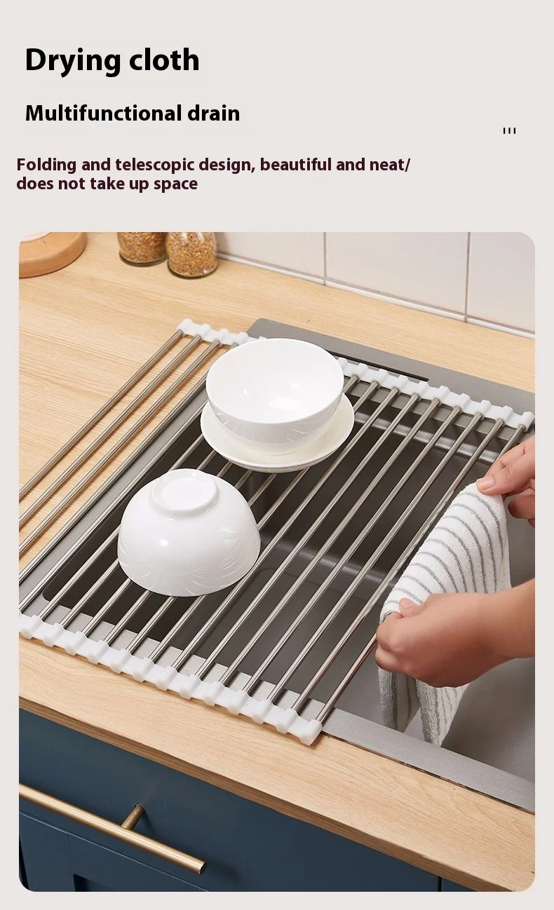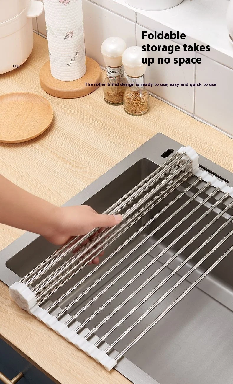 Kitchen sink drain rack foldable roller blind multifunctional new stainless steel sink storage rack filter drain rack