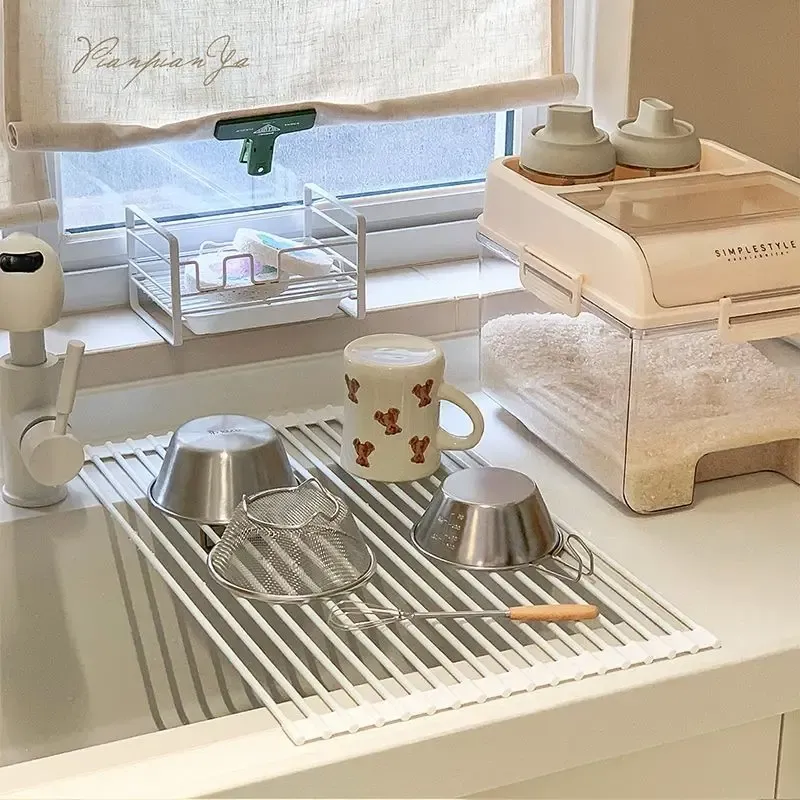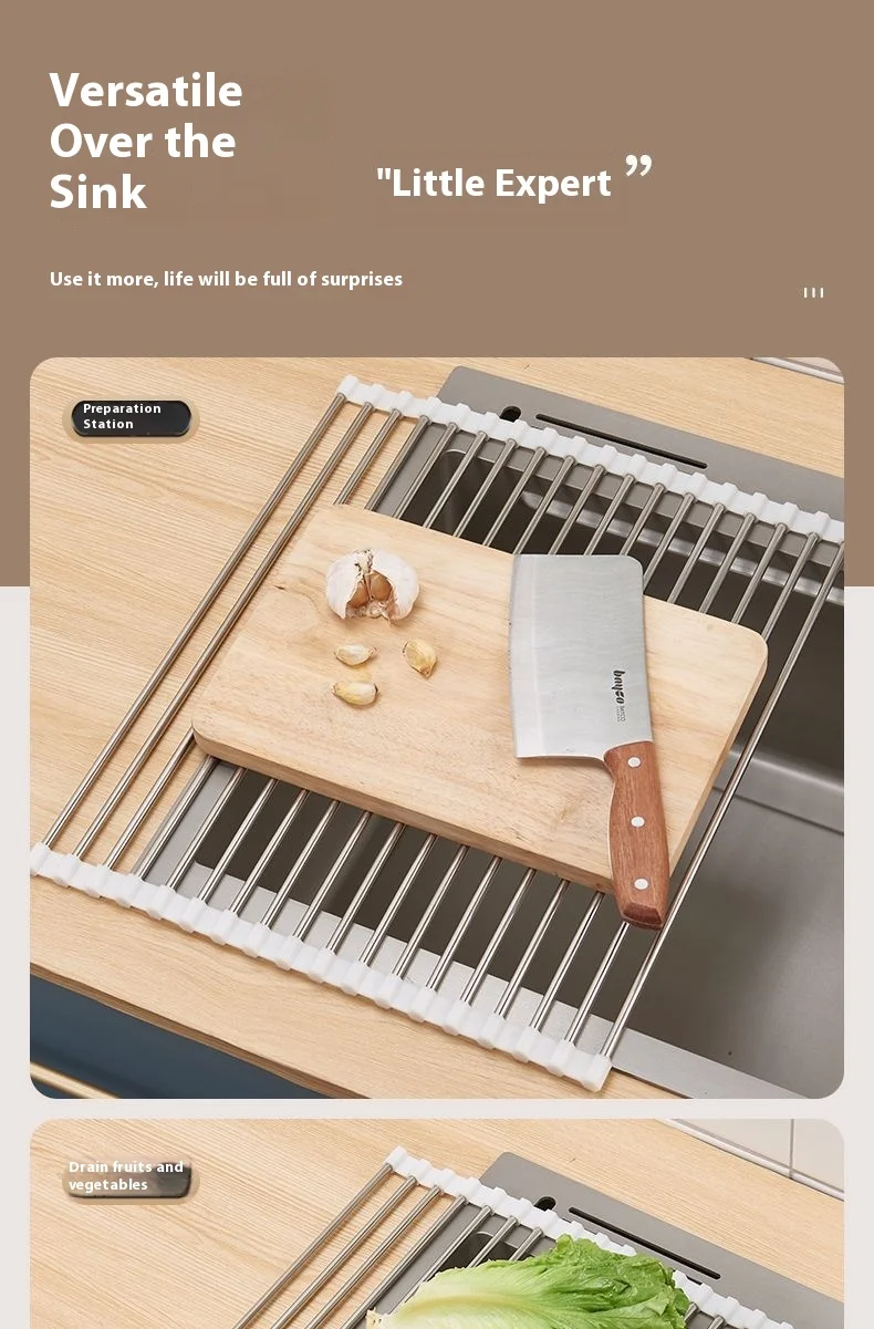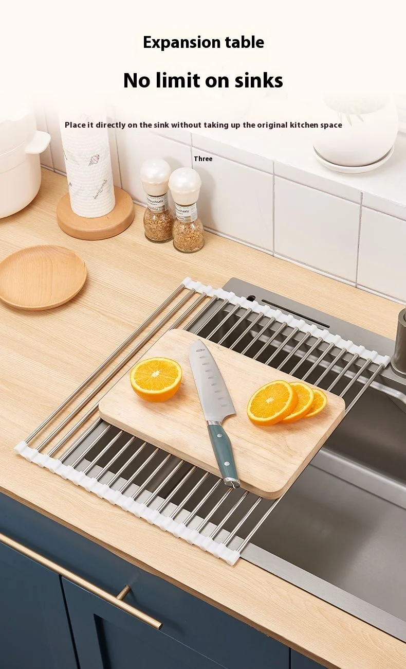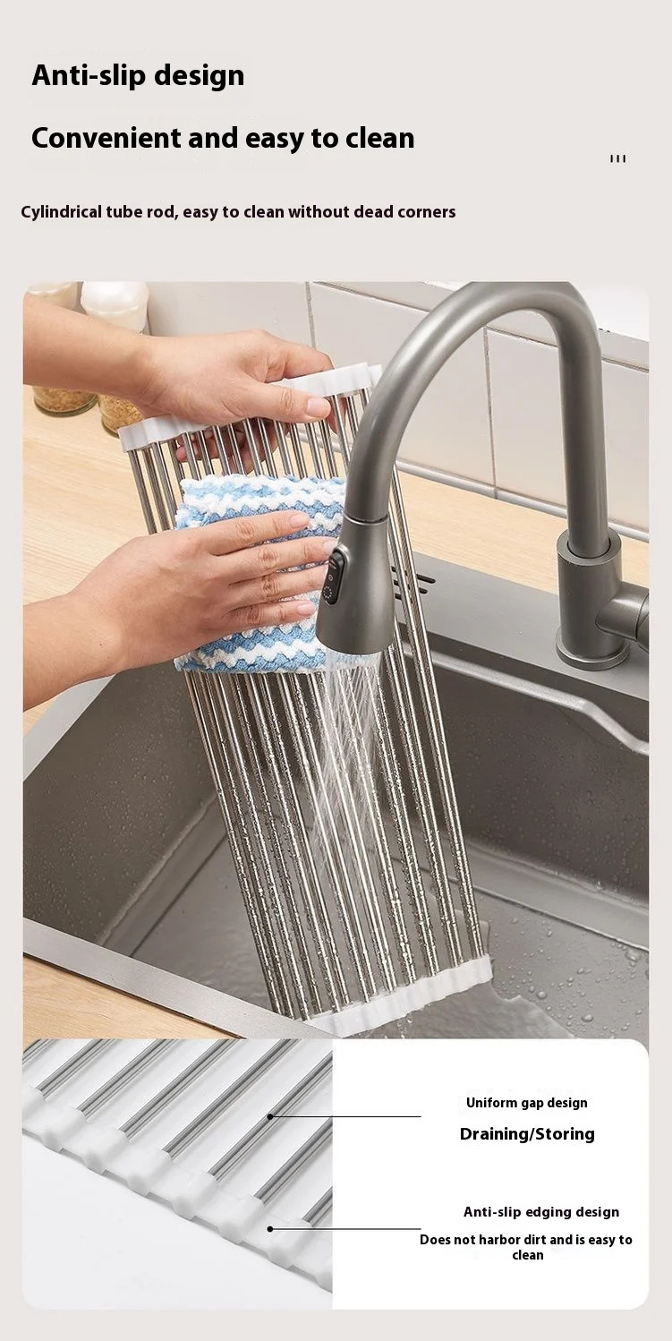 Kitchen sink drain rack foldable roller blind multifunctional new stainless steel sink storage rack filter drain rack