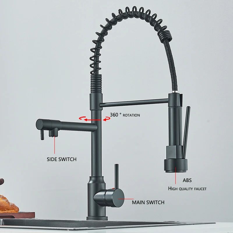 Kitchen Sink Faucet Pull Down Hot and Cold Water Mixer2 Mode Tap with Dual Spout 360 Rotation Flexible Deck Mounted