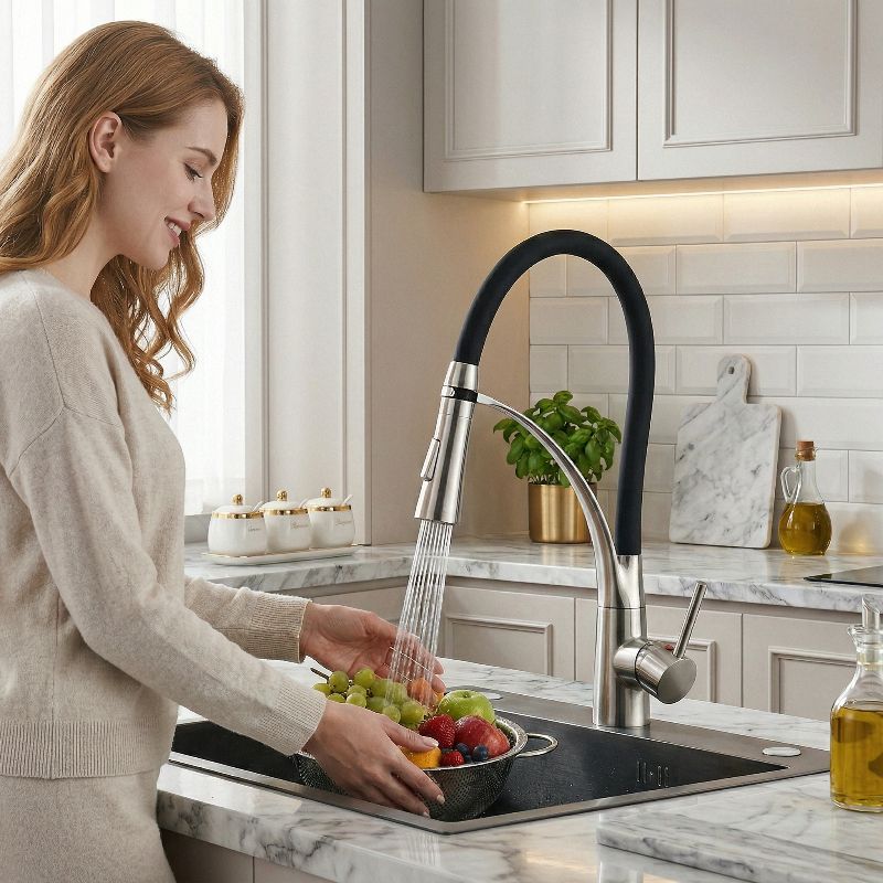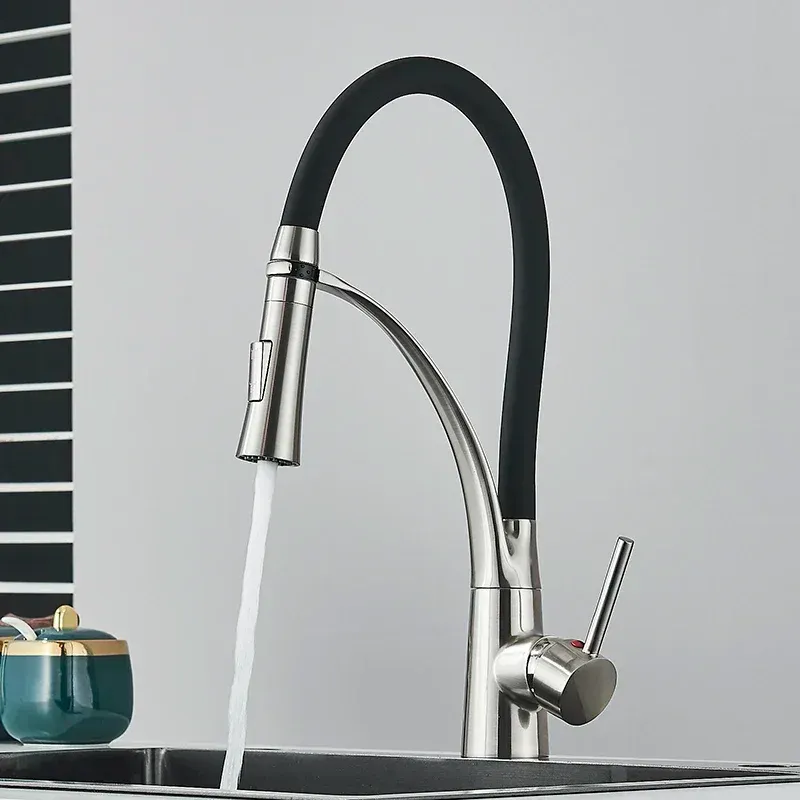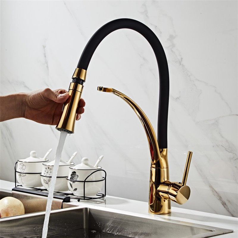Kitchen Sink Faucet Pull Down Rotating Black Sink Tap Hot And Cold Water Mixer Faucet Tap Deck Mounted Mixer Taps