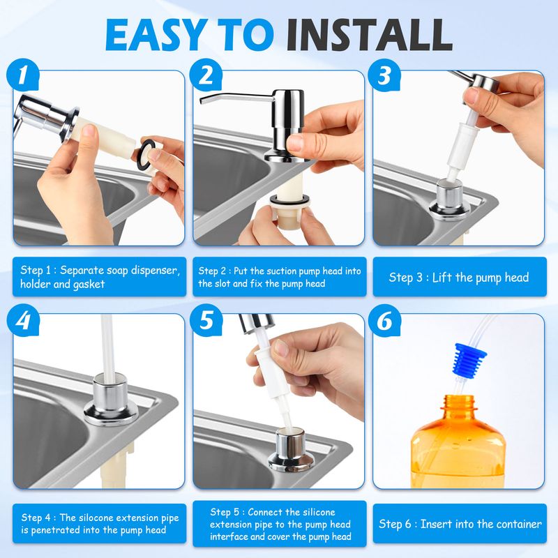 Kitchen Sink Liquid Soap Dispenser Pump Stainless Steel 350ML 500ML Liquid Soap Bottle Sink Mount Hand Pressure Soap Dispenser