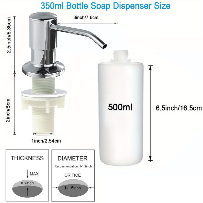 Kitchen Sink Liquid Soap Dispenser Pump Stainless Steel 350ML 500ML Liquid Soap Bottle Sink Mount Hand Pressure Soap Dispenser