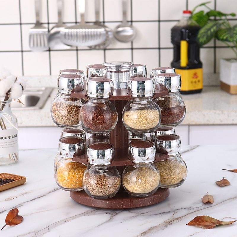Kitchen Supplies Small Seasoning Bottle Combination Small Seasoning Containers With Shelf Brown Double 16 Bottles