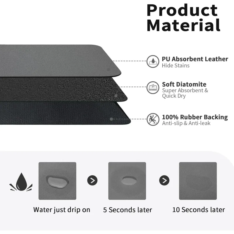 This mat made of super absorbent soft diatomite that can suck up spilled coffee instantly. Coffee drying mats for countertop strong water absorption, durable, light weight.