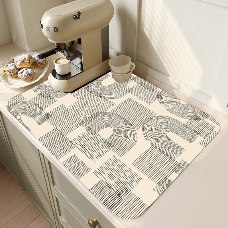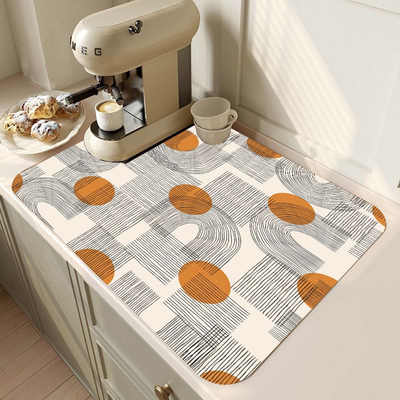 Kitchen Tableware Drying Mat Printed Coffee Machine Drain Pad Countertop Absorbent Draining Mat Placemat Dinnerware Table Decor