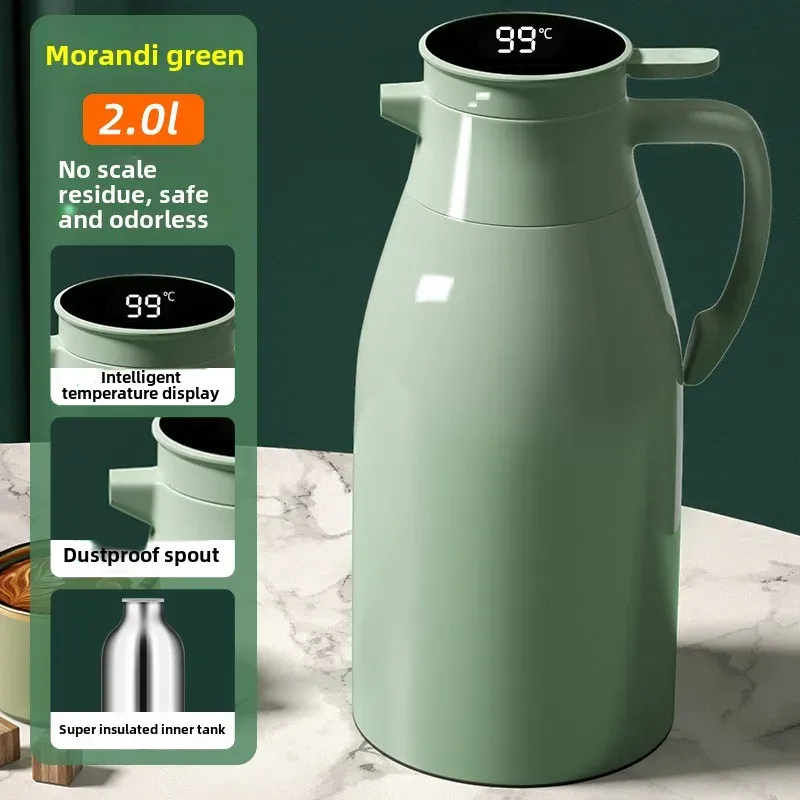 Kitchen Thermal Kettle Household Digital Display Coffee,1/1.3/2L Thermos Glass Liner Vacuum Flasks Large Capacity Water Bottle