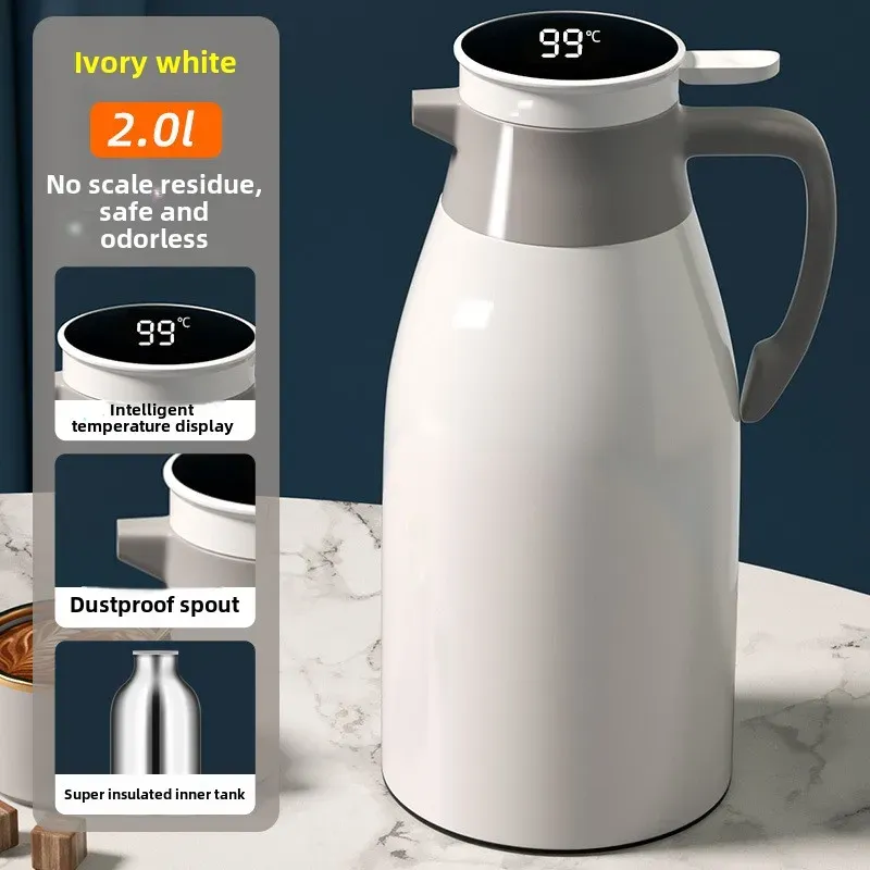 Kitchen Thermal Kettle Household Digital Display Coffee,1/1.3/2L Thermos Glass Liner Vacuum Flasks Large Capacity Water Bottle