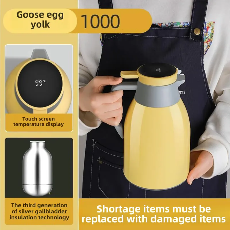 Kitchen Thermal Kettle Household Digital Display Coffee,1/1.3/2L Thermos Glass Liner Vacuum Flasks Large Capacity Water Bottle