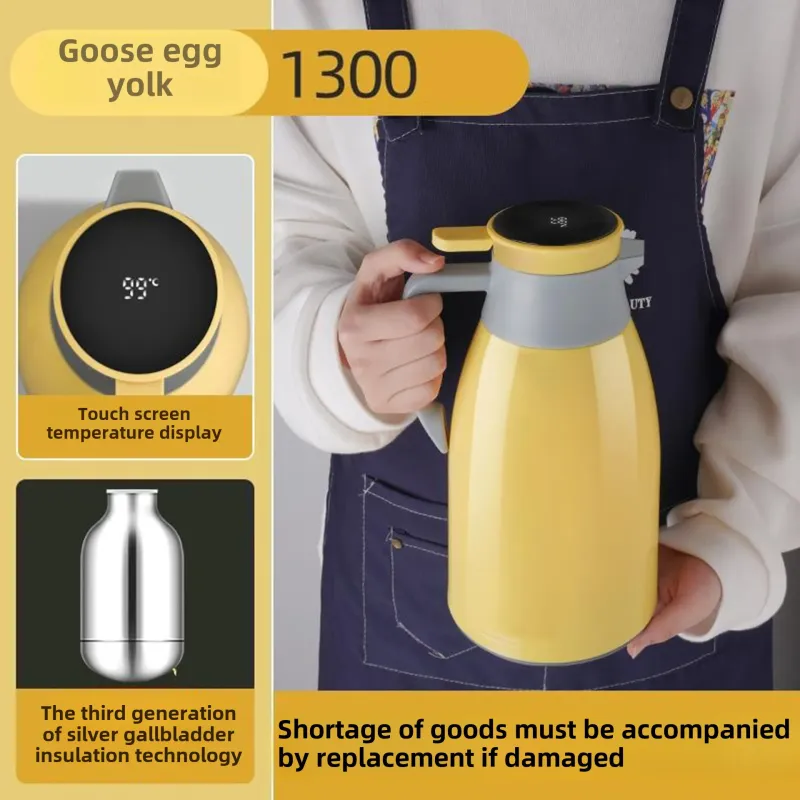 Kitchen Thermal Kettle Household Digital Display Coffee,1/1.3/2L Thermos Glass Liner Vacuum Flasks Large Capacity Water Bottle