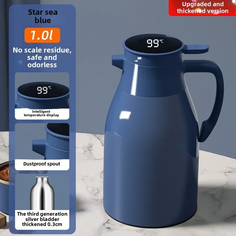 Kitchen Thermal Kettle Household Digital Display Coffee,1/1.3/2L Thermos Glass Liner Vacuum Flasks Large Capacity Water Bottle