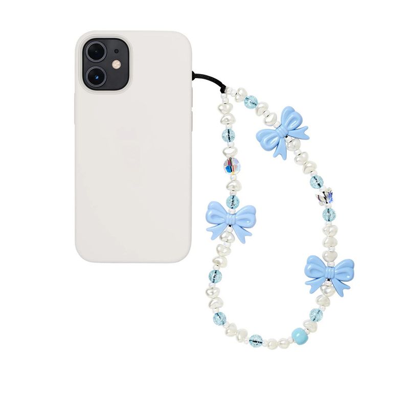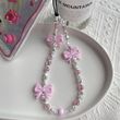 KKBEAD Korean Fashion Pink Bowknot Phone Charm Imitation Pearl Beaded Chain for Phone Case Cute Mobile Straps Y2K Accessories