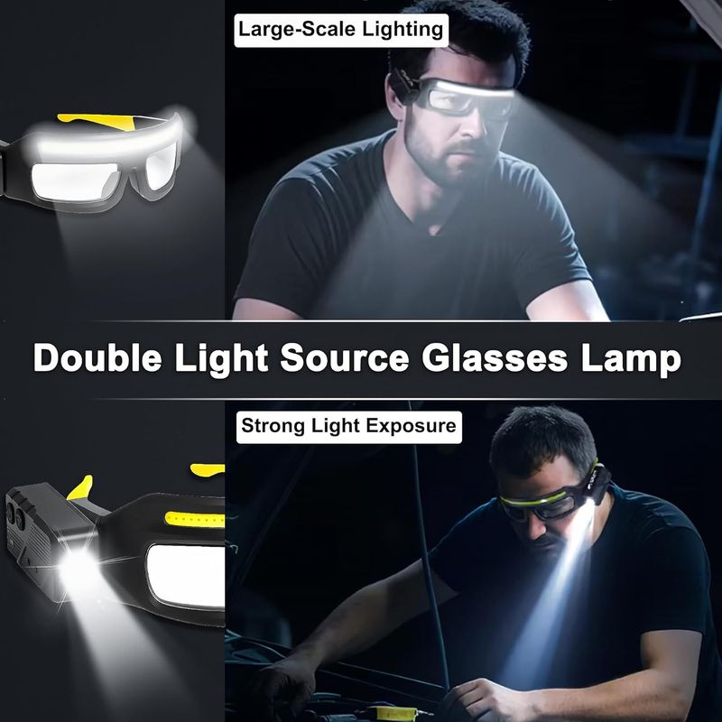KLASSNUM Men Headlamp Transparent Glasses Hands-Free Headlamp 99g Ultra Light, Wave Sensor Control, 5 Modes w/Strobe, 90° Rotatable, USB-C Rechargeable for Cycling Fishing Repair