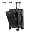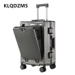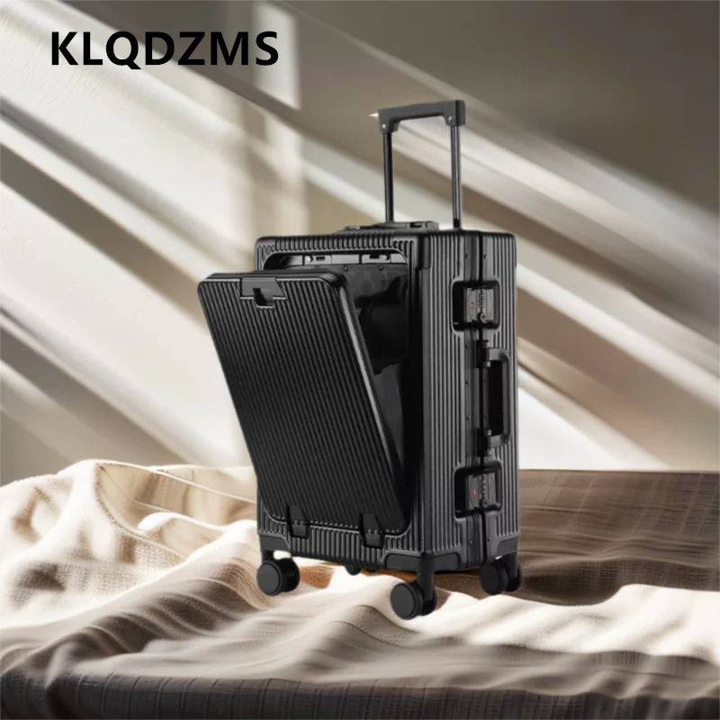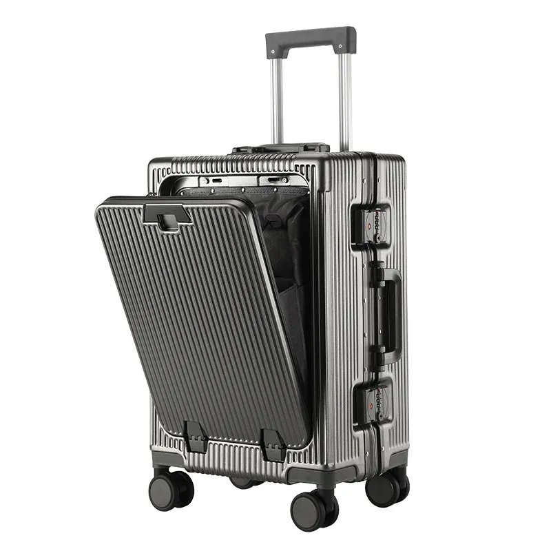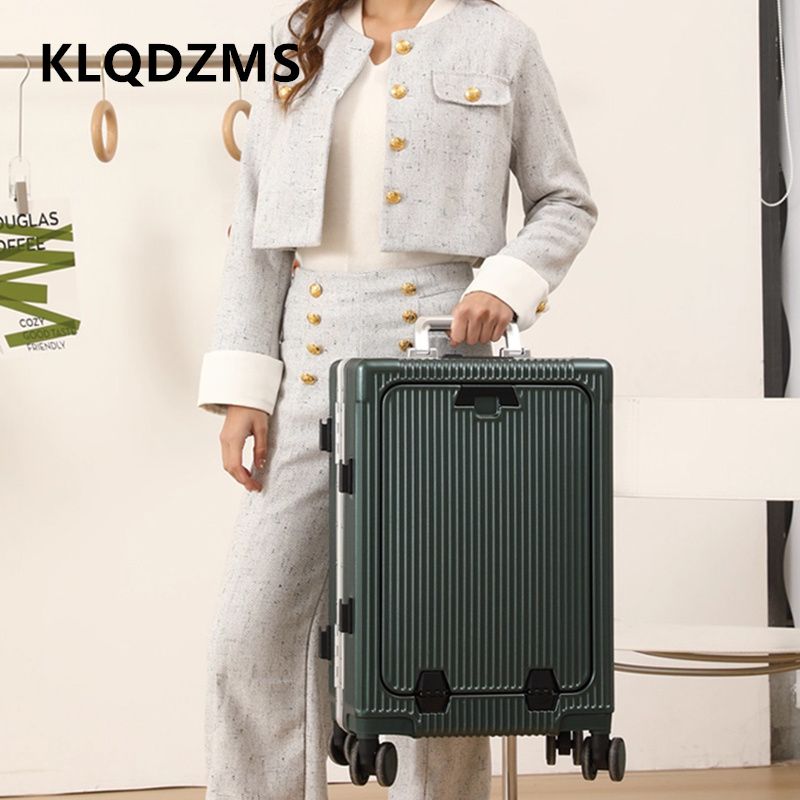 KLQDZMS Laptop Suitcase USB Charging Boarding Case PC Front Opening Aluminum Frame Trolley Case 20"24 Inch Carry-on Luggage