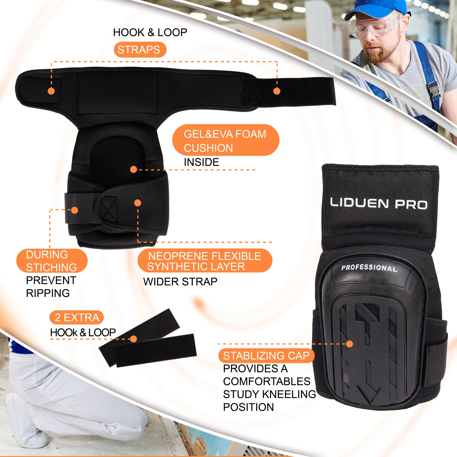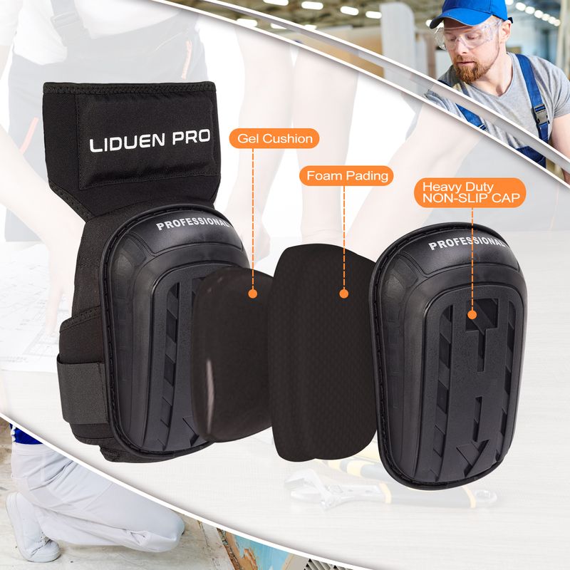 Knee Pads for Work, Construction Gardening Flooring and Cleaning with Heavy-Duty Anti-Slip Cap — Soft Gel and Foam Padding