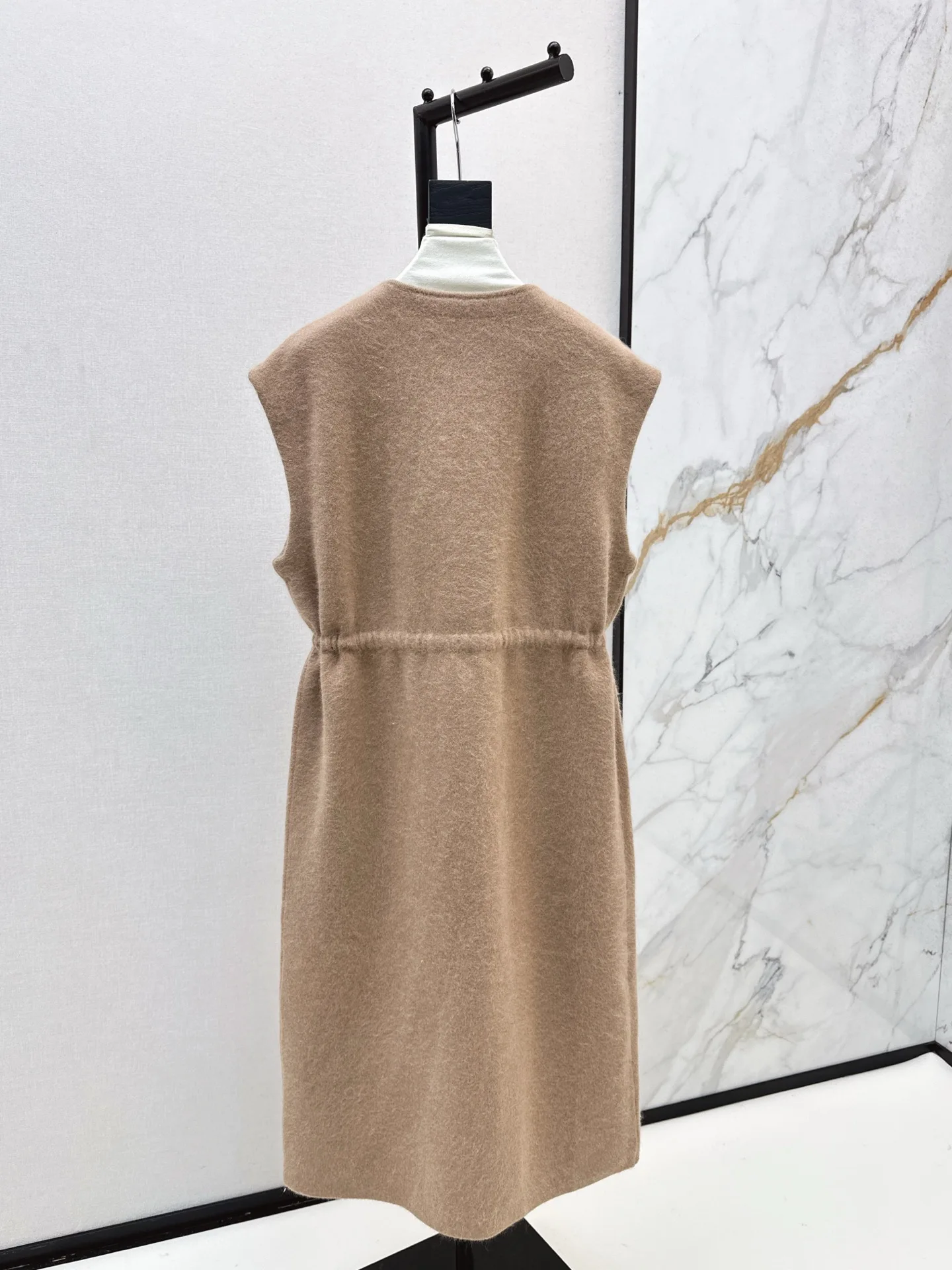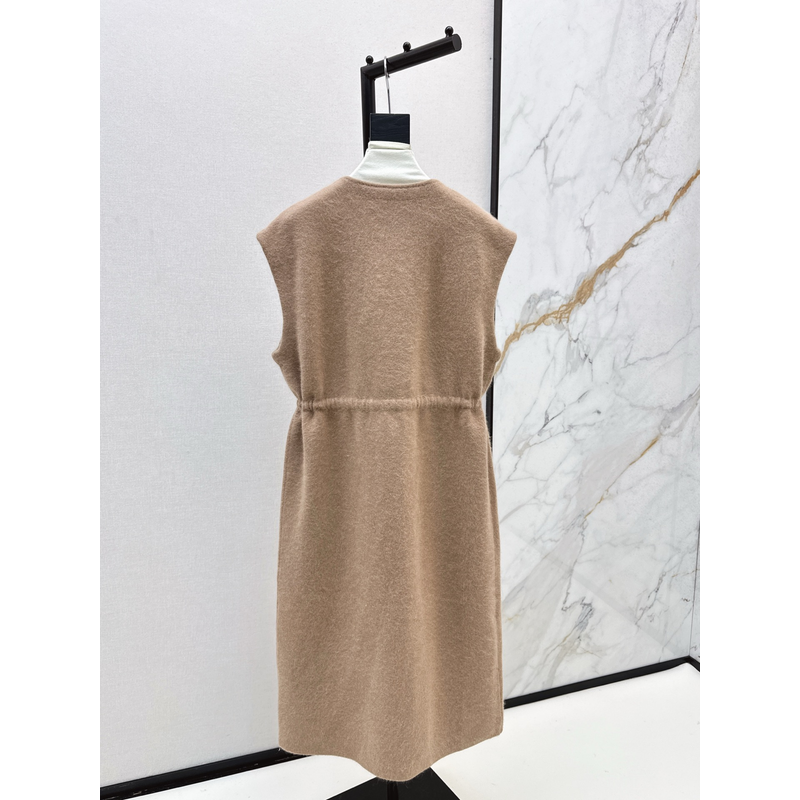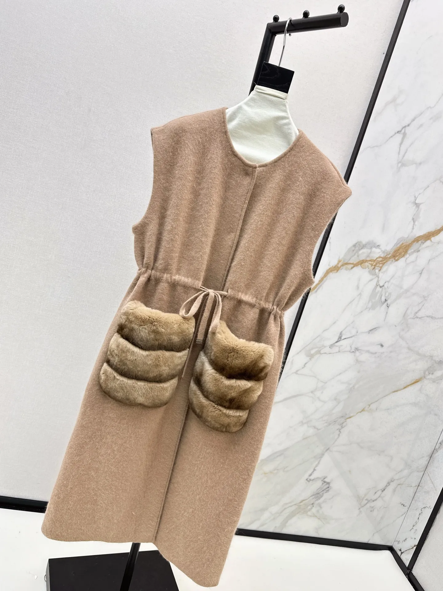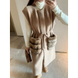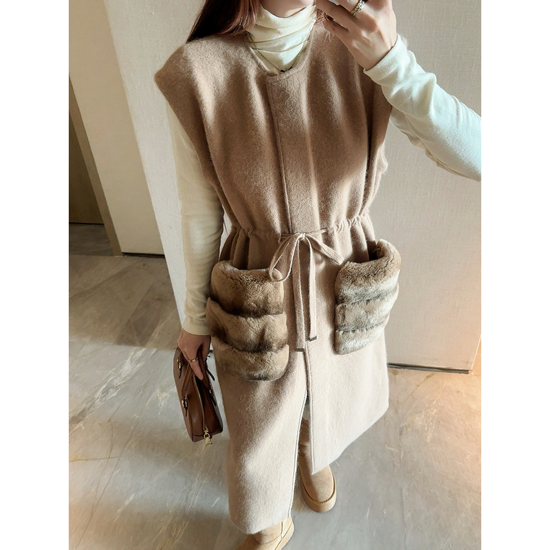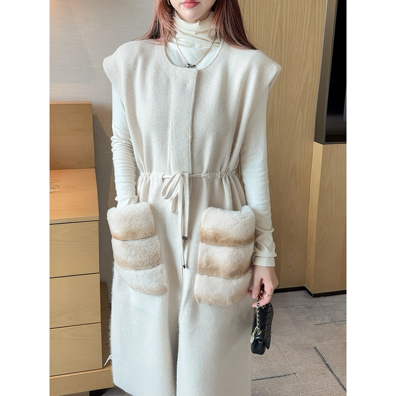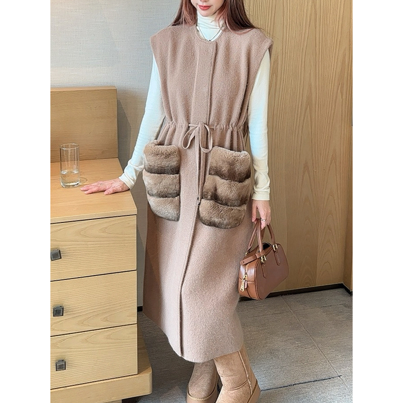 Knit Long Vest Coat - Elegant Casual Rabbit Fur Pocket Sleeveless Women's Long Coat 2025 Fall New Arrival