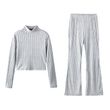 Knitted Long-sleeve Suit Hooded Sweater Trousers Gray S