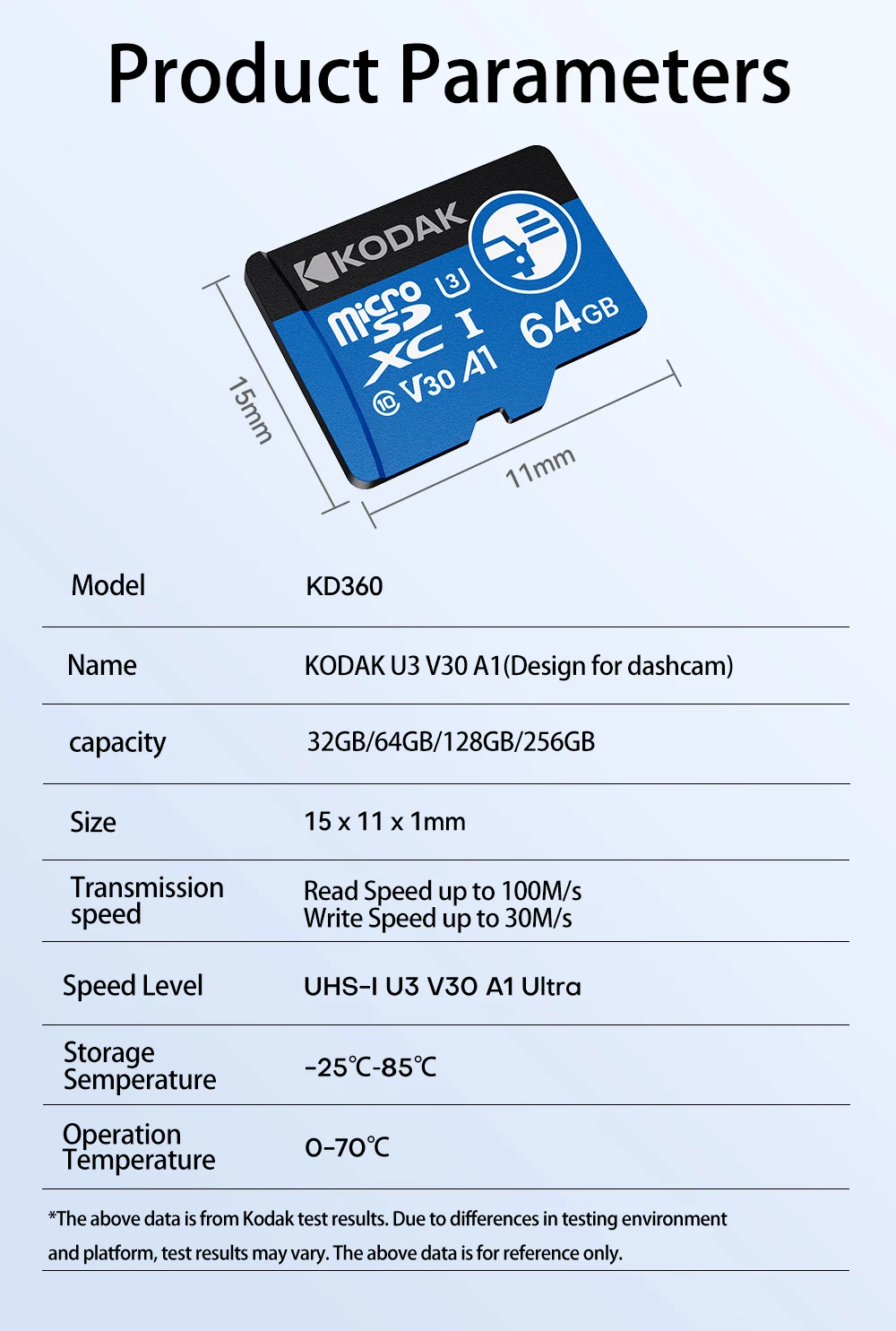 Kodak Dash cam Microsd card High Endurance Memory Card Video Micro sd Card Compatible with Security Camera samrtphone Drone