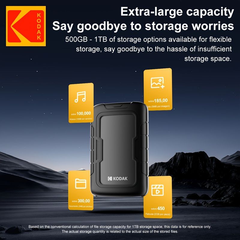Kodak portable external hard drive PHDD, supports USB 3.0, 500GB/1TB/2TB capacity optional