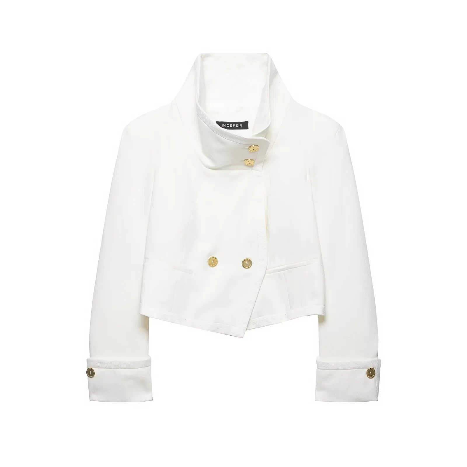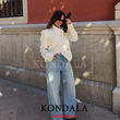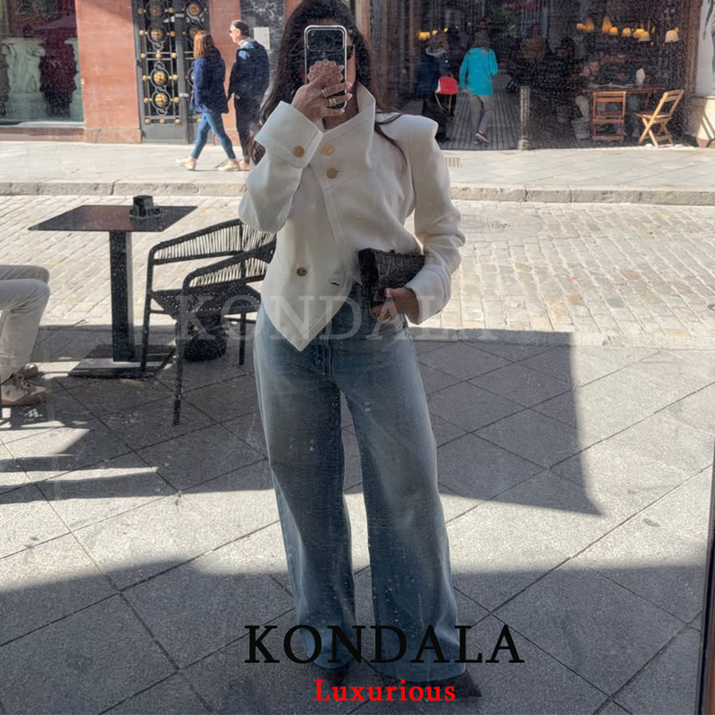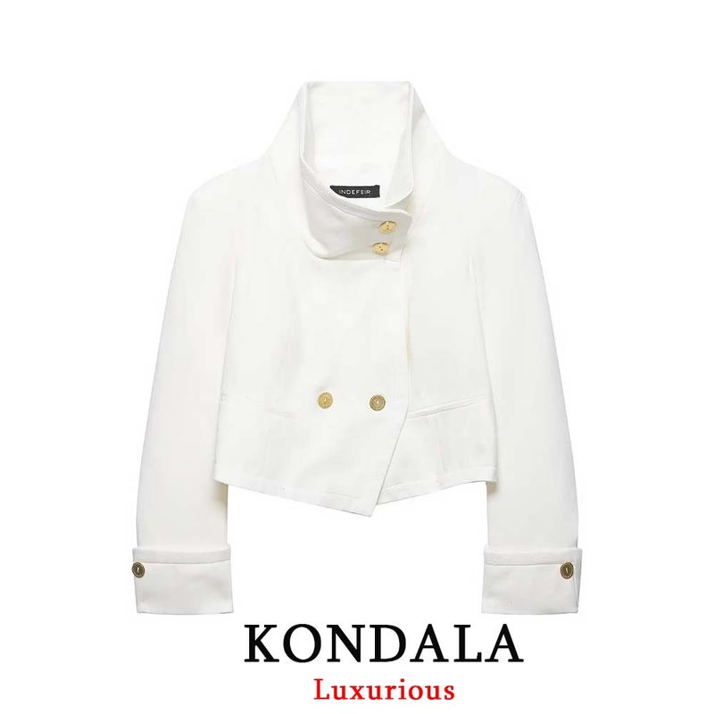 KONDALA Vintage Casual Chic Women Coats White Solid Stand Collar Single Breasted Short Jackets New Fashion 2026 Holiday Outwears