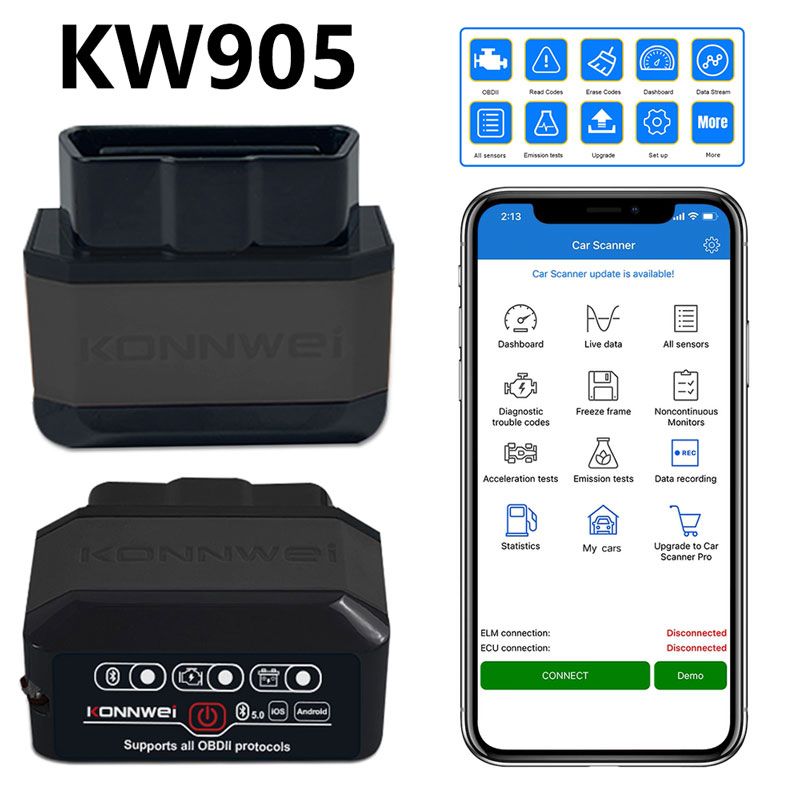 Features: KW905 BT5.0 car OBD2 diagnostic scanner is able to detect and interpret these protocols automatically. It also provides support for high speed communications and a low power sleep mode.