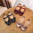 Korean bow tie girl's leather shoes princess shoes Black 22