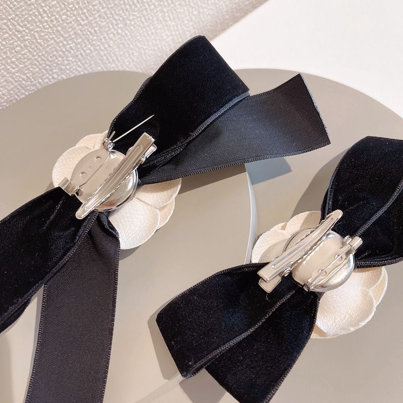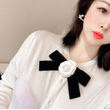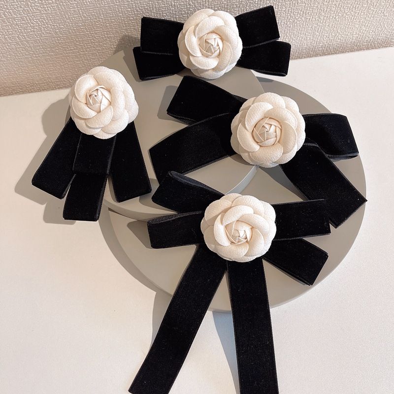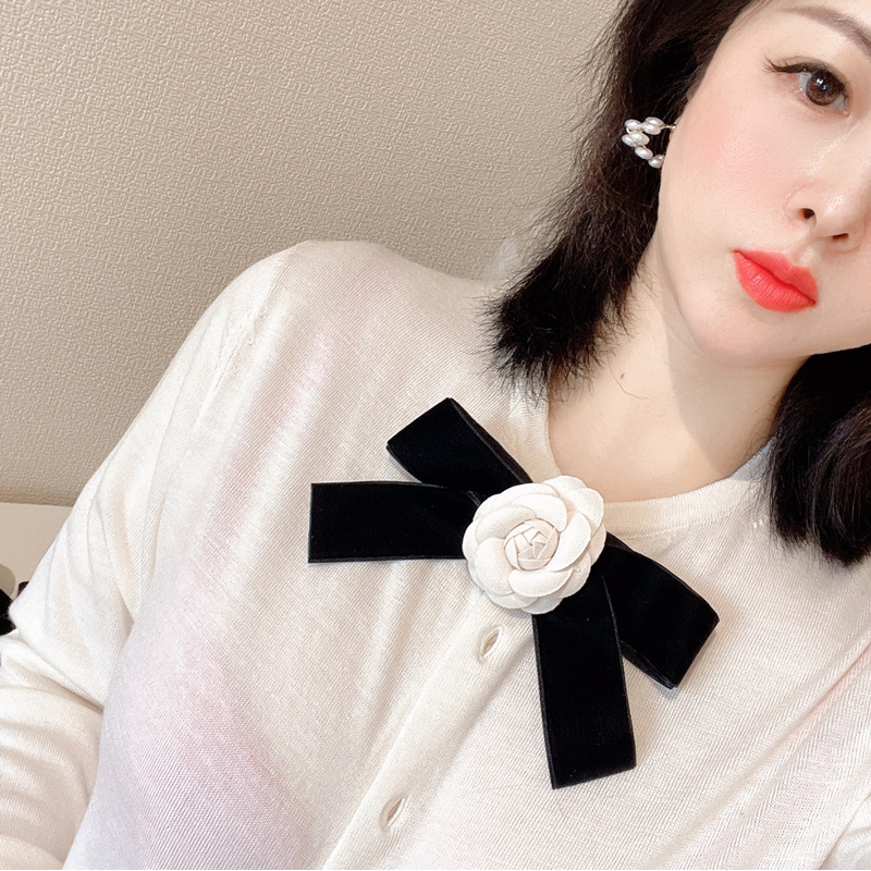 Korean Camellia Women's Bow Tie Brooch Retro College Style Shirt Collar Flower Fashion Velvet BowTie Corsage Pin Gift for Women