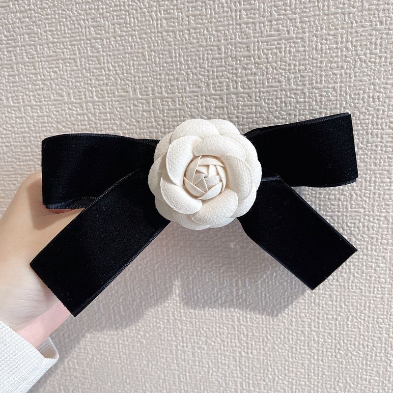 Korean Camellia Women's Bow Tie Brooch Retro College Style Shirt Collar Flower Fashion Velvet BowTie Corsage Pin Gift for Women