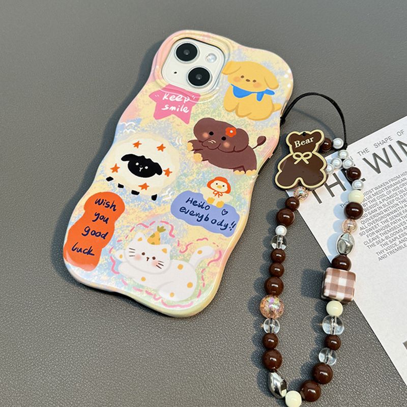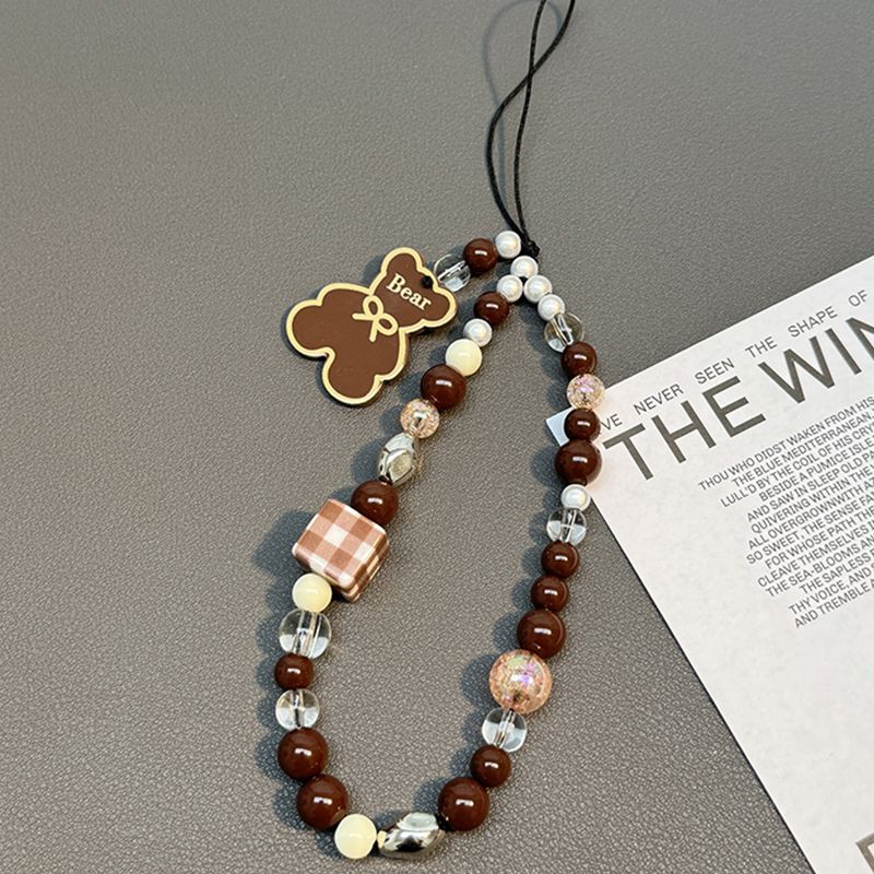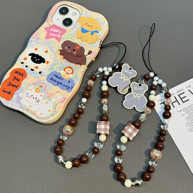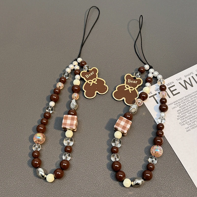 Korean Cute Brown Bear Shell Beads Beaded Phone Chain For iPhone Samsung Camera Hanging Rope Anti-Lost Lanyard Hanging Jewelry