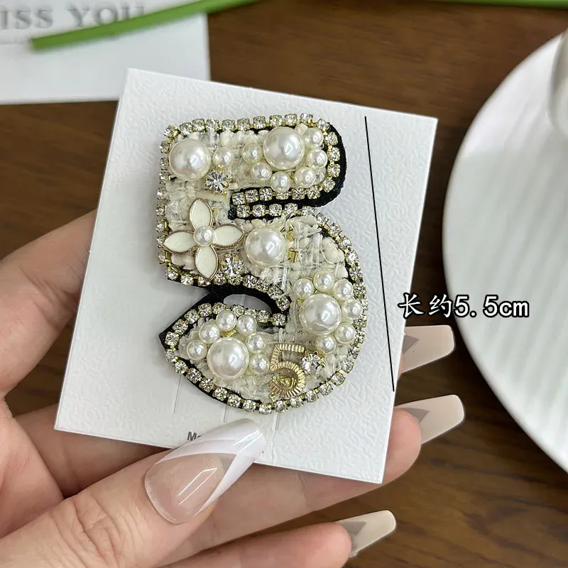 Korean Fashion Flower Brooches for Women Rhinestone Pearl Number 5 Corsage Luxulry Wedding Pearty Brooch Jewelry Accessories