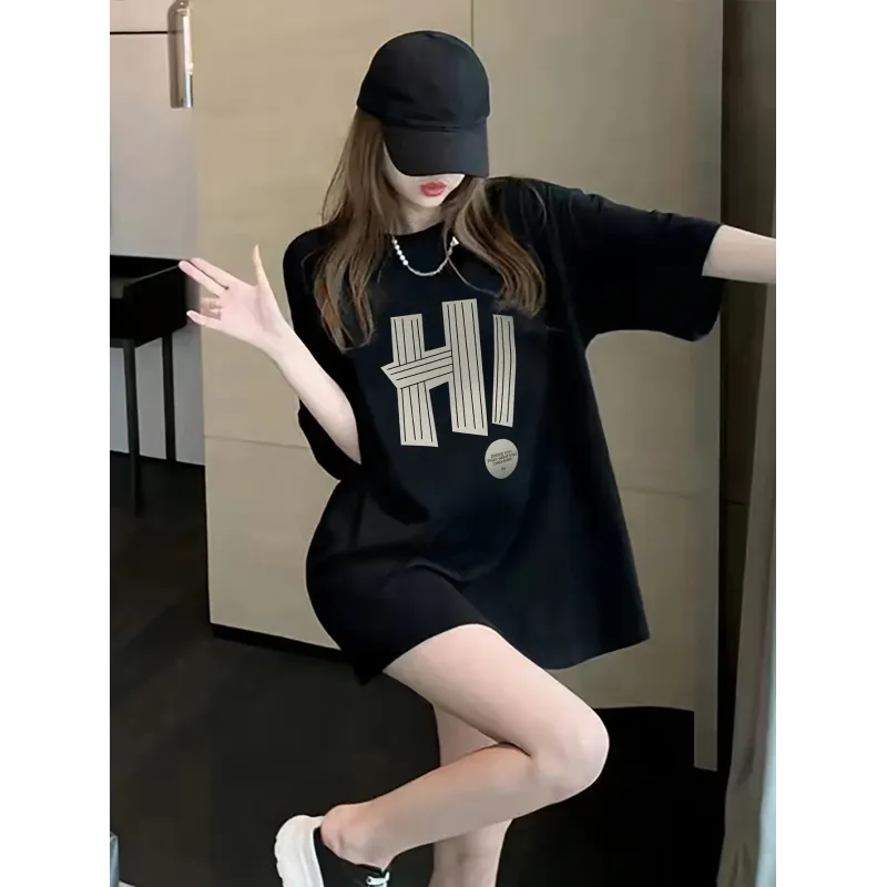 Korean Fashion Women T-shirt Simple Letter H! Printed Tees Summer O-Neck Loose Tops Street Casual Female Clothes