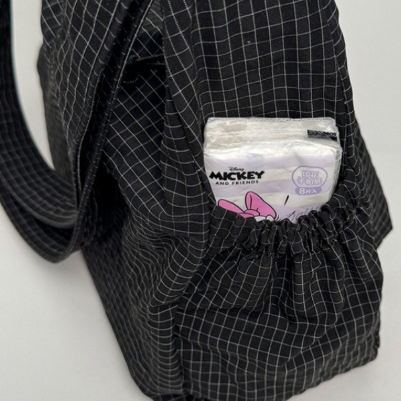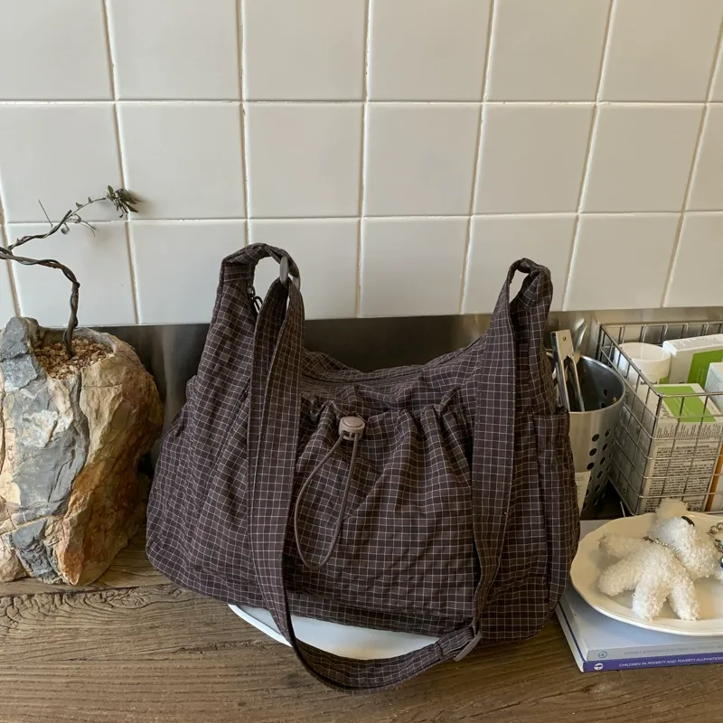 Korean Nylon Shoulder Bags Fashion Simple Plaid Zipper Tote Drawstring Pleated Cloud Bags New Commuter Crossbody Shoulder Bag
