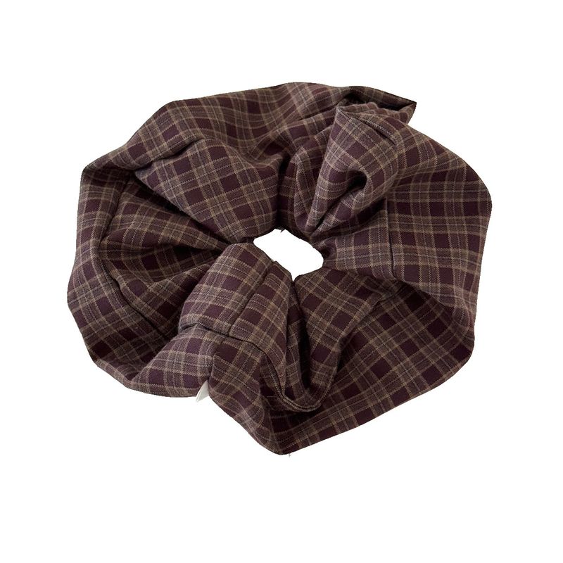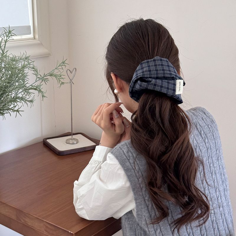 Korean plaid retro large hair band tied ponytail rope scrunchies accessories for women girl elastic vintage leading fashion kpop