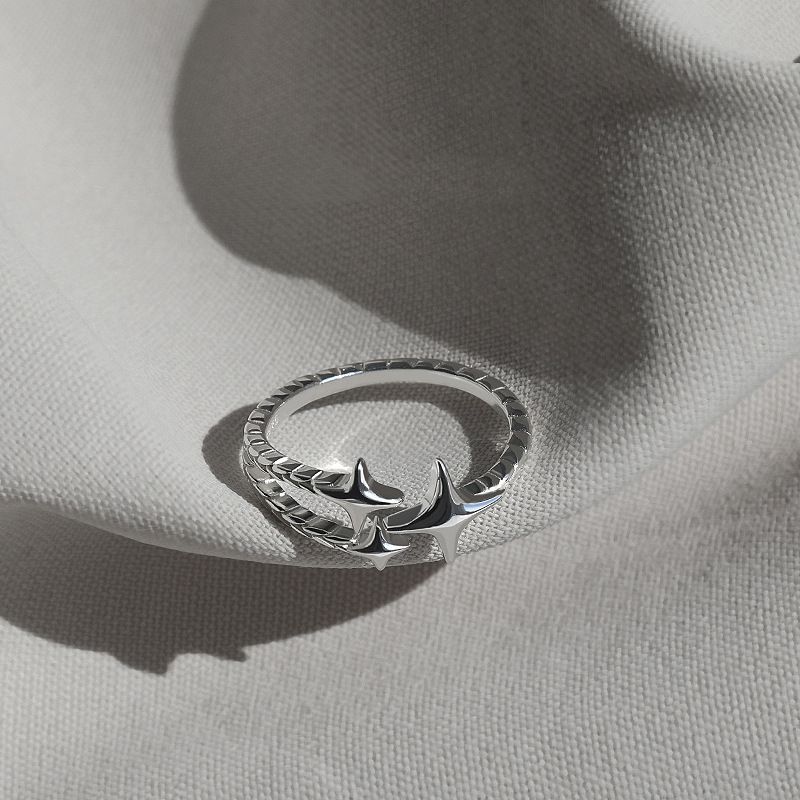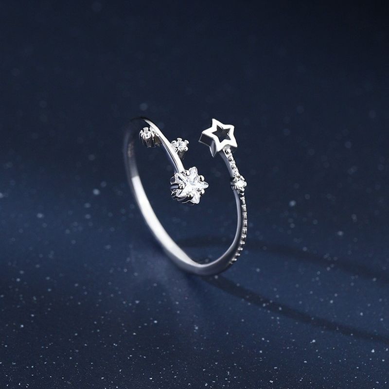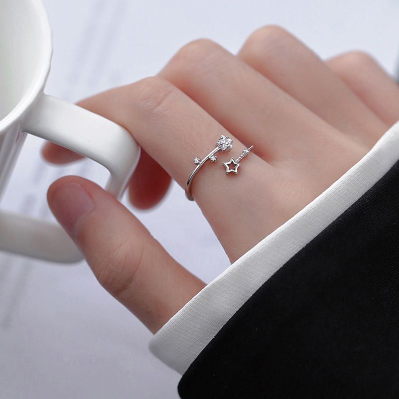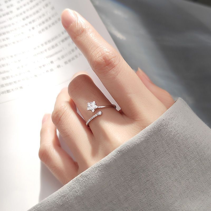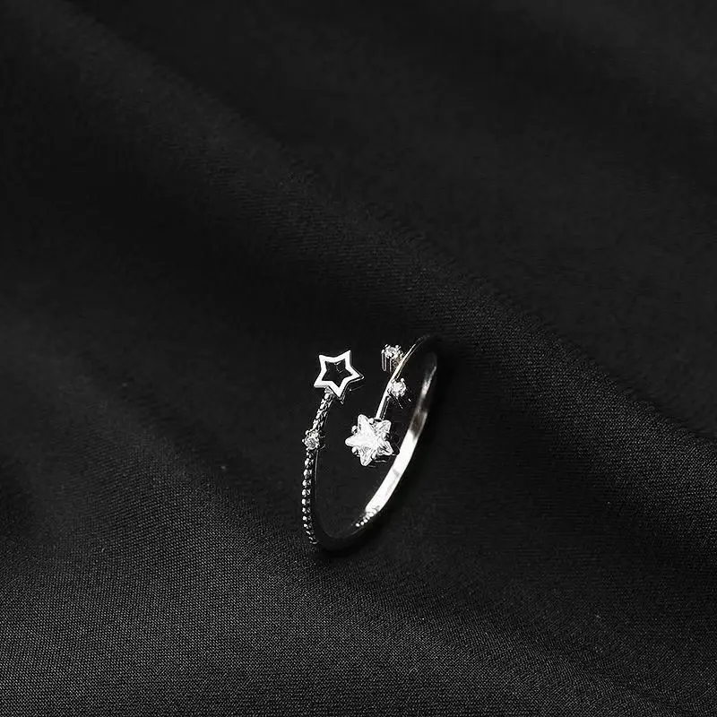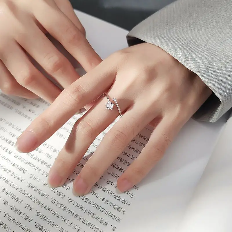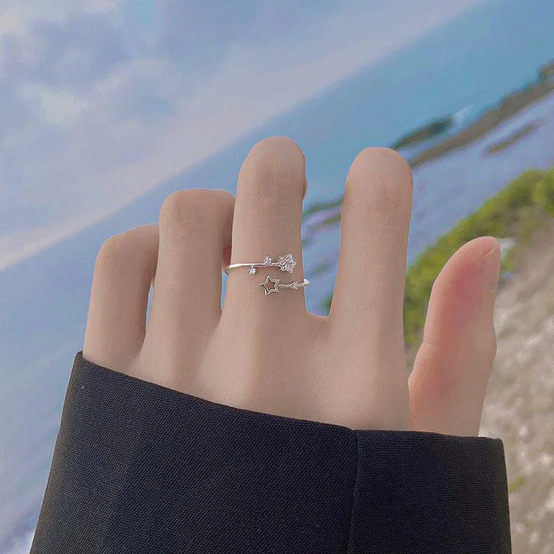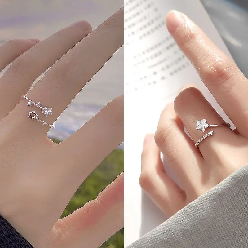 Korean Silver Color Shiny Five Pointed Star Rings for Women Simple Zircon Cross Hollow Star Open Finger Rings Jewelry Party Gift