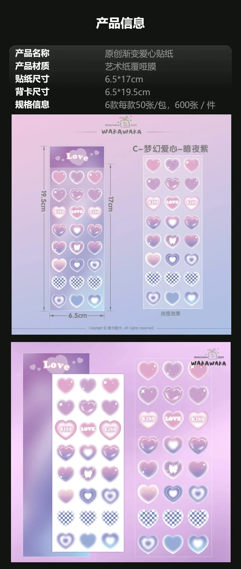 产品规格:6款每款50张/中包,600张/件