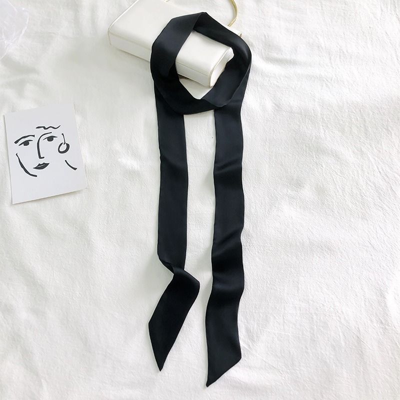 Korean Style 190*5cm Women Plain Chiffon Silk Scarf Solid Color Long Hairband Versatile Decorative Streamer Bag Tie Satin Ribbon