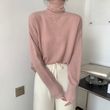 Korean Style High Collar Soft Glutinous Velvet Bottoming Sweater Dark Pink L
