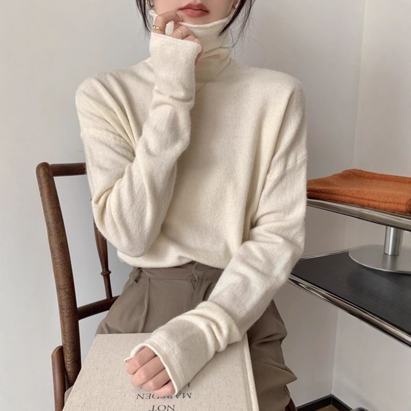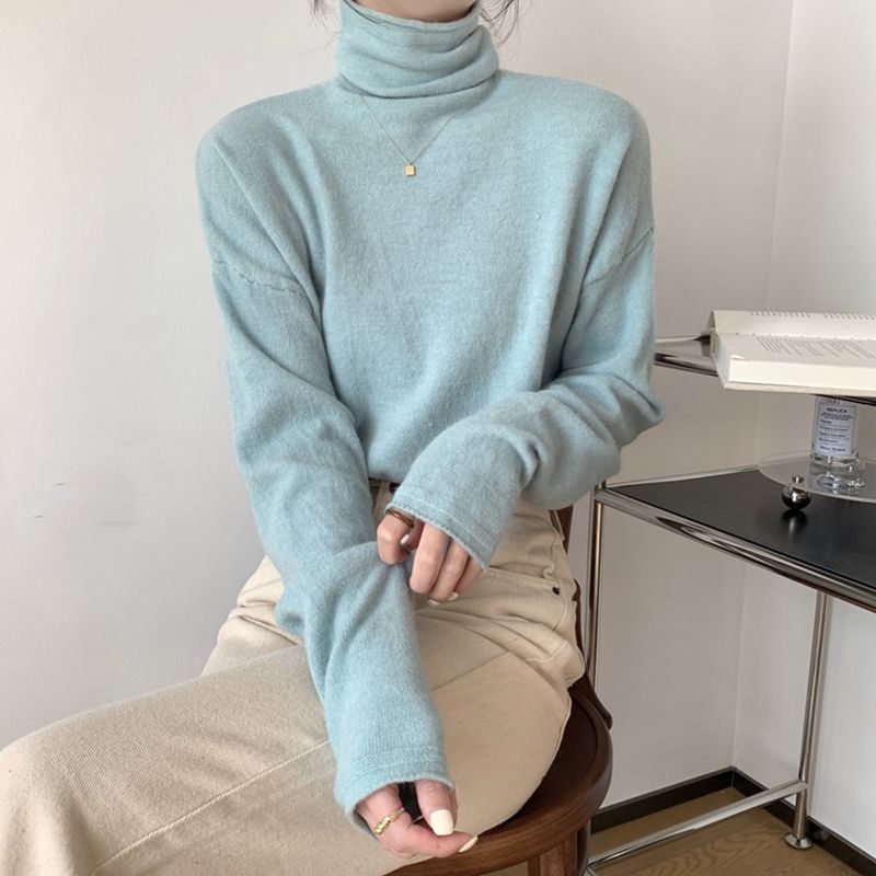 Korean Style High Collar Soft Glutinous Velvet Bottoming Sweater Light Blue M
