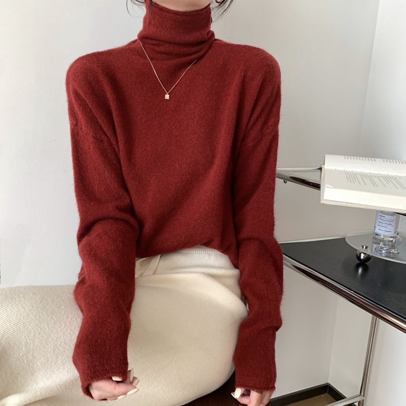 Korean Style High Collar Soft Glutinous Velvet Bottoming Sweater Red M