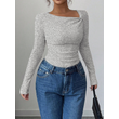 Korean Style Pleating Irregular Design Top Silver Gray L