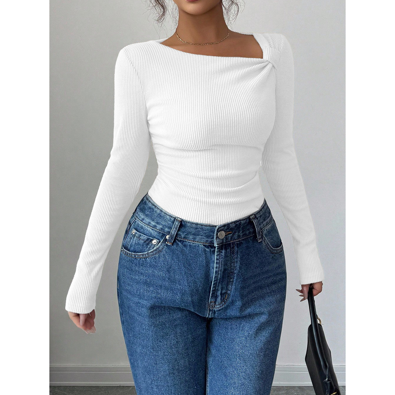 Korean Style Pleating Irregular Design Top White S