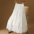 Korean Sweet Summer Solid Color Women's Clothing Elastic Waist Gauze Lacefashion Versatile High Waist Mid Length A-line Skirts