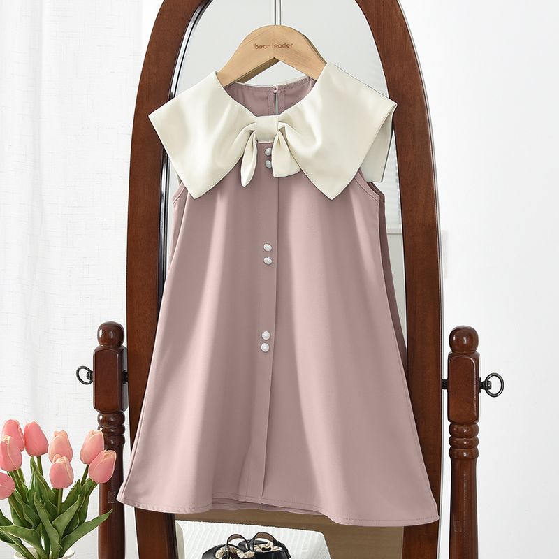 Korean Version Black Sleeveless Kids Clothes Summer New Bow Decoration Girls Dress Birthday Party Princess Dresses 2-7 Years Old