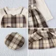 Korean Version Long Sleeved Shirt Fake Two-piece with Belt+Print Hat Outfits 3-7 Years Old Autumn New Plaid Girls Casual Dresses