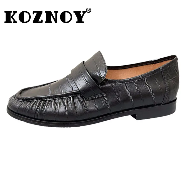 Koznoy 2cm Cow Genuine Leather Comfy Mary Jane Slip on Chunky Sneakers Women Loafer pumps Fashion Platform Wedge Flats Flats